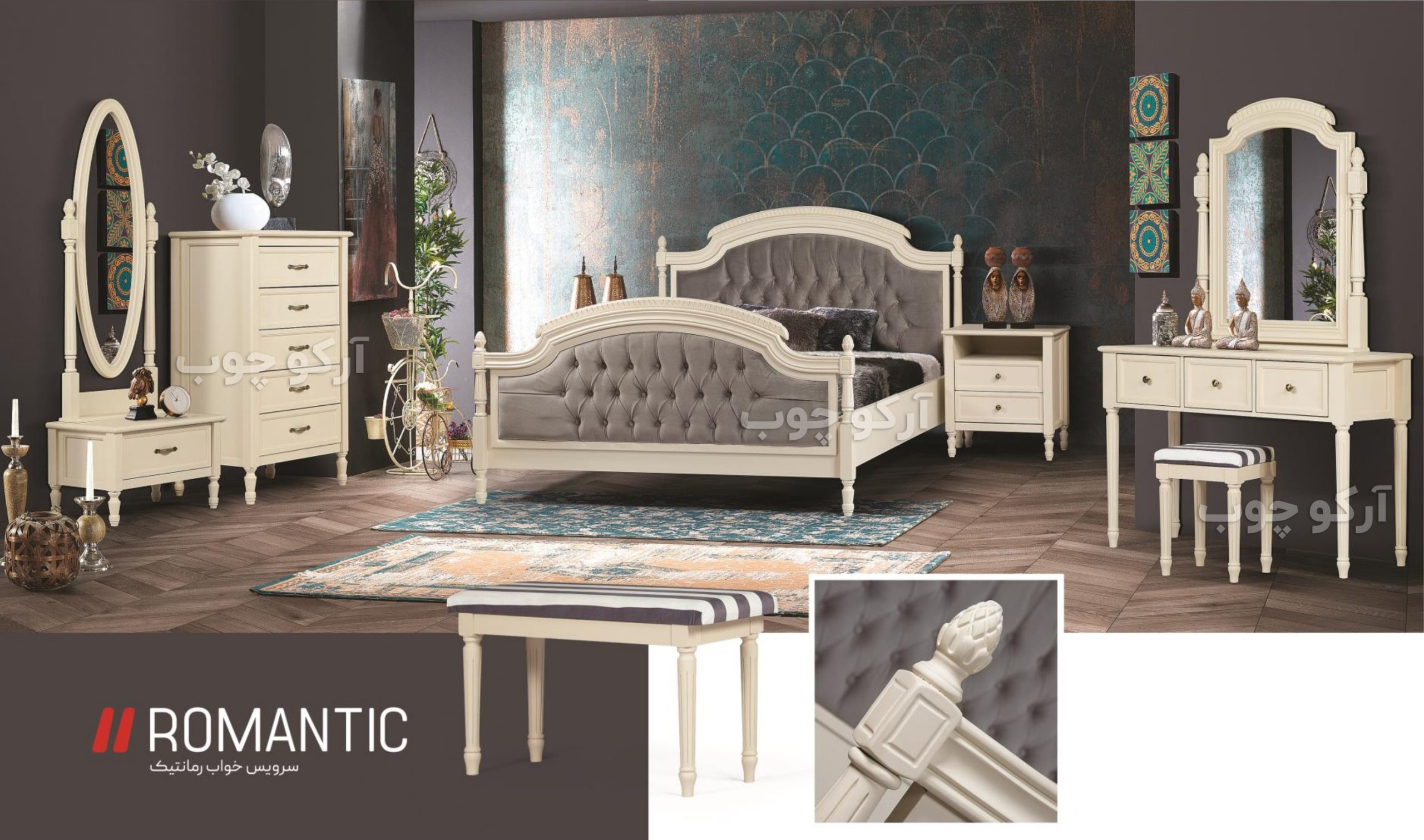 سرویس خواب دو نفره مدل رومانتیک